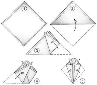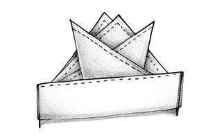 Channel your inner origami-master to get this complex fold right. Use a starched cotton square in any solid colour for best results. Contrasting edges add that something extra.