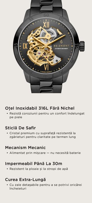 • Automatic Function: mecanismul mecanic automat Seagull ST1646 se încarcă în timpul purtării, alimentând ceasul fără baterie.